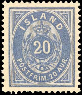 ICELAND 1882 20a ultramarine hinged mint with Certificate