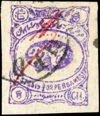 Iran Meshed 1902 5ch violet with red Victor Castaign initials, four good to large margins fine postally used, Iran Philatelic Study Circle Certificate (2025)