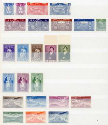 1937-61 mint collection with 1937 SE watermark 2s6d, 5s and 10s; 1940-68 E watermark set, plus both 1d coils and inverted watermark 1d, 1½d, 2d, 3d, 4d, 6d, 8d, 9d, 10d and 2s6d; all commemoratives 1937-1953 plus 1961 St Patrick, and 1948-65 Air set. STC £1068