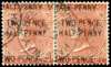 Jamaica SG 30b, c, ca 1890 2½d on 4d pair with varieties used