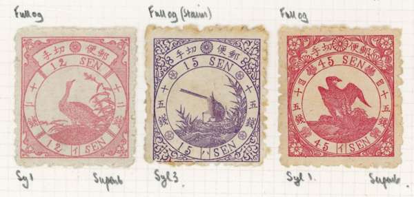 Japan 1875 Birds set of three hinged o.g