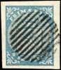 1855 4sk blue, four good margins, fine used with complete grid cancel. SG 1
