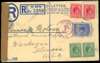 Postal Stationery. 1940 use of Leeward Islands 3d postal stationery registered envelope size G, pairs of ½d and 1d with light CDSs of 19 NO, straight-line PASSED THE CENSOR on front with Boston transit of DEC 1. Slight ink-run affects address, still a very pretty cover