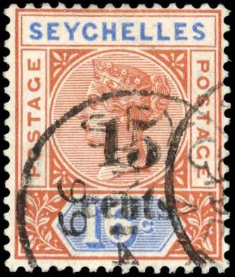 Seychelles SG 19b 1893 15c on 16c surcharge double used