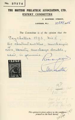 1893 15c on 16c chestnut and ultramarine, surcharge double, fine used with MY 14 99 CDS. BPA Certificate (1955). SG 19b, £750