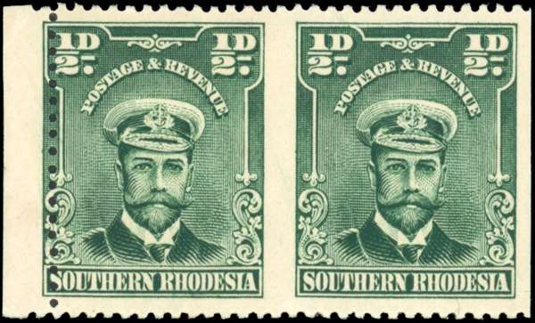 Southern Rhodesia SG 1c ½d pair imperf vertically variant mint