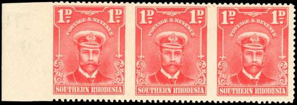 Southern Rhodesia SG 2aa 1924 1d strip imperf between mint