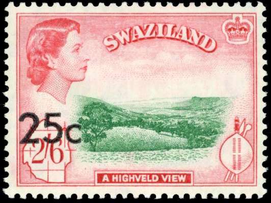 Swaziland SG 74b 1961 25c surcharge Type II at lower left mint