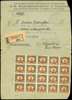 Western Ukraine: 1919 (17.V.) trilingual printed Eisenbahndienstsache envelope franked on reverse with block of 20 (5 x 4) overprinted Bosnia Herzegovina 2ch on 2h, overprint inverted, the 4th stamp with part of overprint missing, Stanislau 2 registration and datestamp; some toning and faults to opened-out envelope, an impressive multiple on cover.