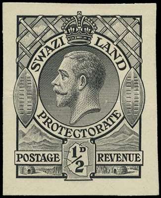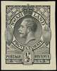 1933 ½d, die proof in black on thick wove, imperforate with 2-3mm margins. Horizontal crease not affecting fine appearance. Attractive and very rare.