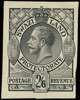 1933 2s6d, die proof in black on thick wove, imperforate with 1½-2mm margins, close at lower right. Attractive and very rare. Illustrated on p.220 of the 2013 handbook 'Swaziland Philately to 1968' by Peter van der Molen.