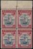 1938-50 10s, line perf 14, slate-blue and bright carmine (narrow frame), top marginal positional block of four from the 1943 printing with printer's guidelines (Positions 3-4, 9-10), top two stamps unmounted otherwise large part og. A scarce multiple with lovely colour. SG 163b, £1,200, CW 25