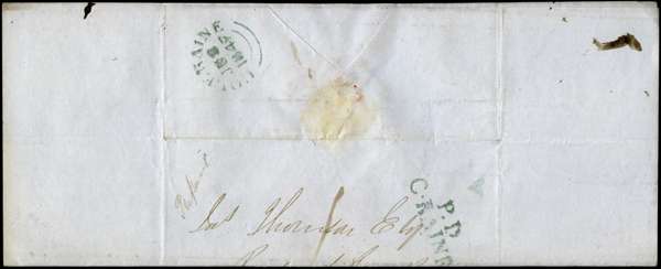 POSTAL HISTORY: 1845-47 one hundred and twenty-seven similar entire letters all addressed to Belfast Bank, Ballymoney with Coleraine dispatch cds and "P.D/C.RAINE" in black, blue and green, some vey fine; all re-folded horizontally and most missing the markings. Generally good to fine. (127)