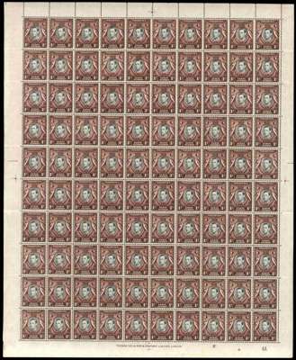 KUT 1938-54 1c sheet of 100 with varieties including missing 'A' of 'CA' in watermark, SG 131a, ab, ad.