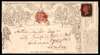 1840 1d Mulready lettersheet, Forme 6 Stereo A230. A superb example sent from New Buckenham to London bearing an additional four margin 1d Black Pl.4 each beautifully cancelled by a crisp red MC, with a "New Buckenham/Penny Post" handstamp at lower right. Backstamped at Attleborough and London for JU.15-16.1840. A beautiful example of an uprated Mulready, rarely seen in this quality. 1998 RPS Cert.
