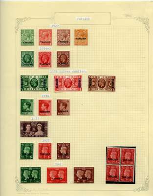Tangier: 1927-1947, mint collection arranged on leaves, we note; 1940 1d scarlet as unmounted block of four, 1949 set to 10s ultramarine, 1955 Castles to 10s, generally fine condition. SG 231-342, STC £500