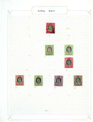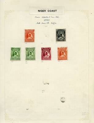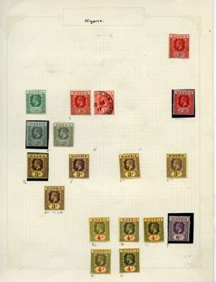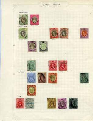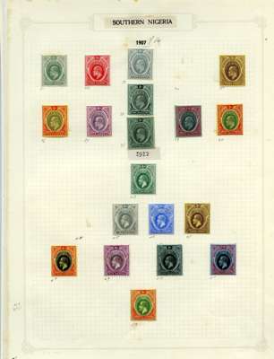 1895-1936 mint and used selection on album leaves including: Niger Coast 1897 values to 1s black, Northern Nigeria range of KEVII AND KGV to 10s, Southern Nigeria 1901 part set to 2s6d, 1907-11 part set to 5s, Nigeria 1914-29 part set to 10s, mixed condition with fine.