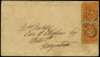 POSTAL HISTORY: 1870 local cover from Berbice to Georgetown with a pair of 1866-71 2c orange perf. 10, top stamp has a tear and missing top left corner, both cancelled with "A04" obliterator marks, Berbice and Demerara c.d.s. on reverse (DE 21 1870), fine