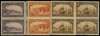 1908 Quebec Tercentenary set of eight to 20c dull brown, as blocks of four, large part o.g; some trivial blemishes as to be expected, with 20c with infinitesimal thin, otherwise fine, with centring far above average, very rare in this form. SG 188-95, £2200+