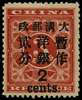 1897 Red Revenue 2 cent on 3c deep red, larger figures surcharge type 19, large part o.g. fine, SG 89, Chan 88