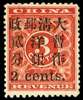 1897 (Jan) 'Red Revenue' with 'small' surcharges type 21, 2c on 3c deep red, rather heavily hinged, fresh part o.g. (cat £800)