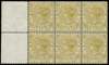 1879 1d bistre, perf. 14 left selvedge block of 6. Fresh & fine MUH. SG T1, Cat. £660++