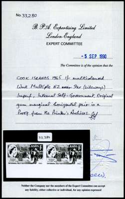 1965 Internal Self Government set of 4 in imperforate horizontal pairs with BPA certs (1990) stating "proof from the printer's archives". MUH & fine. SG 175/78 var.