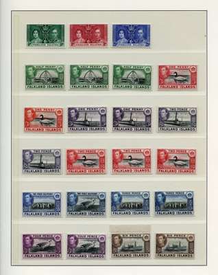1937-50 unmounted o.g. group. 1938 set to 2/6d with very good shades per CW catalogue (1d carmine, all four 1/-s per SG), plus 1950 set and commemoratives, the 3d Victory also in an unmounted Plate block of 6 with R8/6 Crown flaw and re-entry.