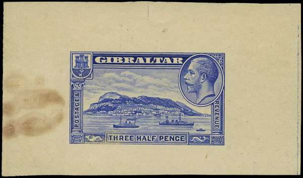 1931-33 1½d blue proof on unwatermarked paper, small age stain not affecting design, scarce, ex Kayfetz (14/5/1997, lot 734), SG 111var