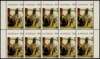 1977 $10 Coming South painting (Tom Roberts) in marginal block of 10 with massive perforation shift resulting in "AUSTRALIA $10" appearing in the top half of stamp plus on the bottom selvedge. A striking error. Fresh MUH. ACSC 784b, Cat. $3000++