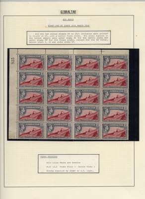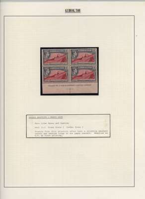 1938 6d carmine and grey-violet, perf 13½. Unmounted o.g. top left corner block of twenty with sheet number to the left of R1/1, fine but with rust-stain from paperclip affecting the reverse of two; and imprint block of four from the second printing in this perforation (Mar. 39), o.g., lightly hinged on top pair, showing characteristic pink tinge to the paper surface. SG 126, £1152