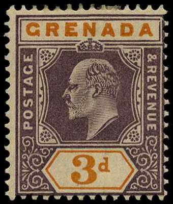 1902 3d dull purple and orange watermark Crown CA, R1/3 LP damaged frame and crown (Spaven flaw), large part o.g. SG 61a, £275