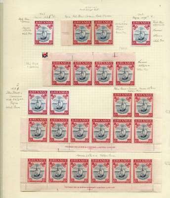 1938-47 10/- mint range on album page with SG 163a mint pair, 2 x 163e singles, 163f pair and three multiples of 163e; top marginal strip of four with the stamps unmounted, lower row of six plus two from the row above (5 unmounted) and lower row of six with stamps seemingly unmounted. SG 163a/f