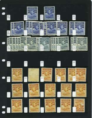 1938 definitive mint stock on Hagner sheets, 9 sets (of which two are unmounted), plus many extras, optimistically allocated to printings. SG 18-28