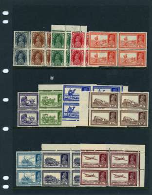 1937 3p to 12a unmounted o.g. blocks of four, fresh with white gum, the odd wrinkle and one 2a6p with a foxed spot, otherwise fine. SG 247-58, £510