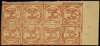 1898-1900 8a Indian red, left marginal block of eight, unused without gum as issued; crease to margin clear of design, an attractive and scarce multiple. SG 15