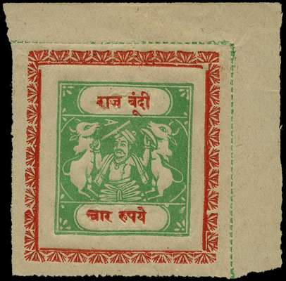 1917-41 4r emerald and scarlet tablets type ''C'' fresh unused, with typical minor splitting from the tablets as nearly always seen, still fine for this stamp. SG 48