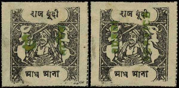 OFFICIAL: 1915-41 ½a black, tablets ''E'', type O1 (native) and type O2 (small British) examples opts in green both sideways, fresh unused, a fine pairing of these scarce issues. SG O33bA/O33baB,