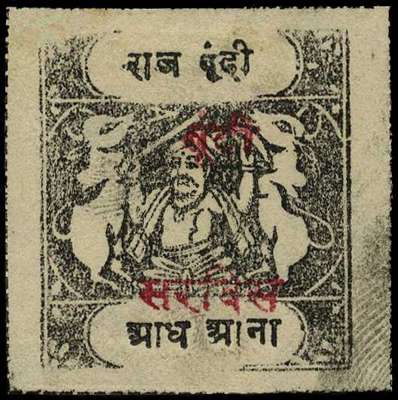 OFFICIAL: 1915-41 ½a black, tablet ''F'' type O1 (native) opt in red, inverted, fine unused. SG O40baA, £550