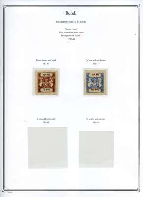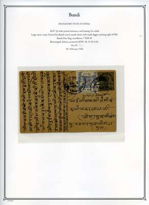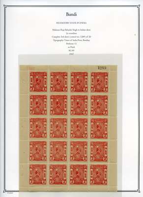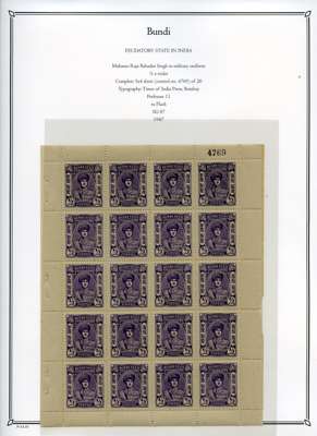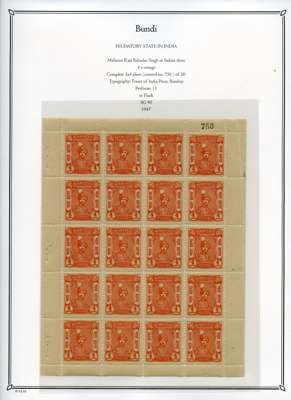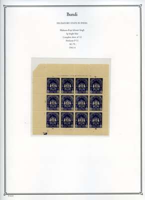 1894-1947 mint and used collection on pages, we note; 1894 ½a slate-grey (SG 2), 1897-98 range of values to 1r yellow/blue (SG 10), 1917-41 good range of 'Sacred Cows' including 2r red-brown and blue and 3r blue and red-brown (tablets type C), uprated KGV 9p postcard with ¼a cobalt (SG 54b), 1941-44 set to 1r deep blue, 1947 complete sheets of the ¼a, ½a, 2a and 4a values, selection of Officials with complete sheets, with SG O33bA and O33bB, 1941 values to 1r deep blue (SG O59) generally fine condition a good lot from this popular Indian state.