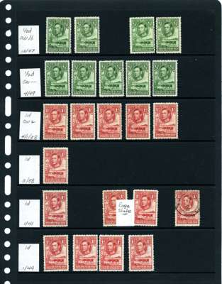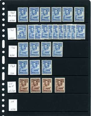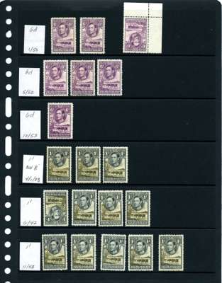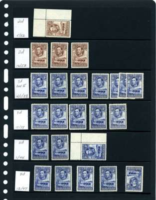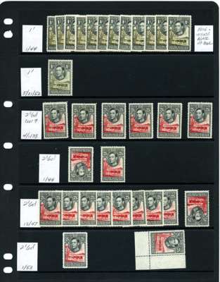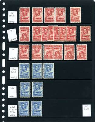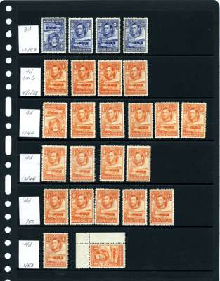 1938 definitive stock on Hagner sheets, nearly all mint with some unmounted, many tentatively allocated to printings. At least 15 sets, with many extra stamps. SG 118-128