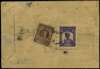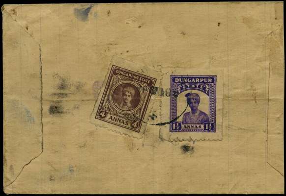 1939-46 handmade envelope franked 1½a deep violet (imperf at top) and 4a brown (perf 10 and imperf on two sides) both well tied by indistinct native cds; both adhesives affixed over central crease as a result of the envelope's construction, which has resulted in some fairly inconsequential creasing to the stamps themselves, otherwise fine still a most scarce and attractive cover. Ex SGA Gaur Sale (22/5/2019 Lot 292) SG 13, 15b