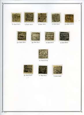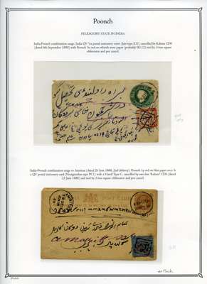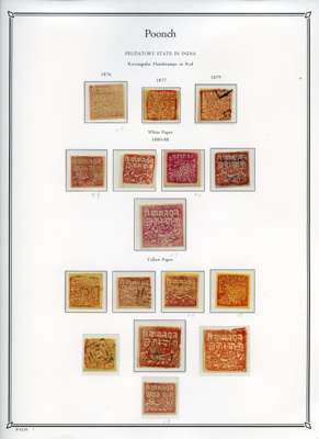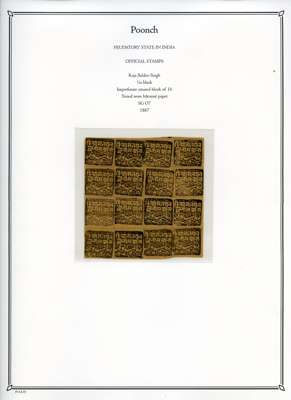 1885-94 mint and used collection neatly arranged on pages, we note; 1885 ½a red, bantonné paper block of 12, (SG 12) 1p red orange-buff wove paper block of 54, showing Pair, one stamp sideways and Tete-beche pair, SG 32,a,b, three combinational frankings, (2 on QV ½a green envelops and 1 on postcard), assorted Officials and a number of identified forgeries, generally fair to fine condition, a useful lot for retail and reference.