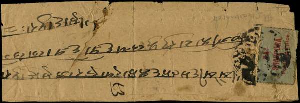 1914 -17 1p carmine on bluish grey paper (type 1) perf 11 on all sides, tied to long native envelope, cancelled by intaglio seal; cover quite creased and stained, affecting adhesive, still a rare item. Society of Philatelic Americans (SPA) Certificate (1981) ex Danforth Walker, SG 1