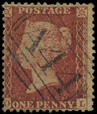 GB USED ABROAD: 1857 1d rose-red cancelled with full strike of Goshen “A44” numeral, small watermark thin on back, attractive, SG Z72