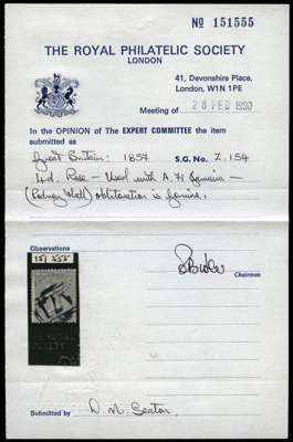 GB USED ABROAD: 1857 1d rose-red (small watermark thin), ex Mike Kitson, and 4d rose (small toned area) ex Derek Seaton with RPS cert. (1990), both cancelled with Rodney Hall “A71” numeral, attractive stamps, SG Z153, Z154 (2)