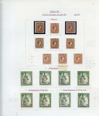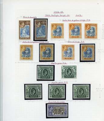1938-52 set on leaves, with numerous shades (73 stamps in all) with some unmounted, including a 2/-, 4 x 10/- and £1. SG 121/133a, £502