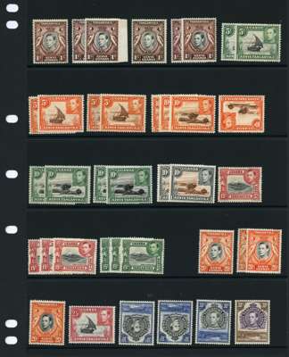 1938-54 set mint range on two Hagner sheets, incomplete in terms of shades and with the better values mainly hinged. We note SG 134c, 141, 141a, 146, 148, 149 and 150 hinged, all fine; and the basic set unmounted plus useful extras