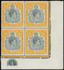 1952 (Sept.) 12/6d bluish grey and deep yellow, unmounted o.g. Plate block of four, fresh. SG 120e, £400