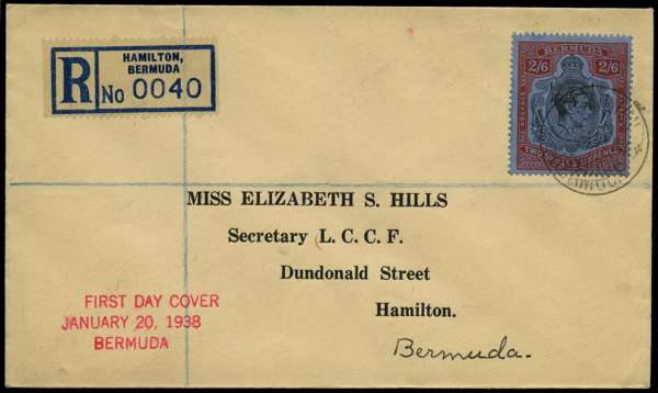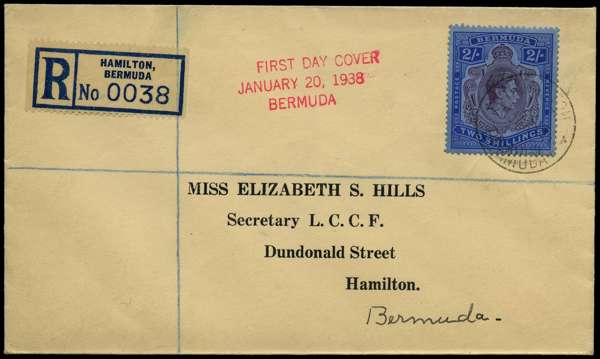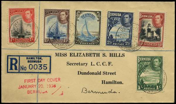POSTAL HISTORY: 1938 set of four registered covers with KGVI set with values to 5/- all cancelled on first day of issue, Hamilton cds (20 January 1938), fine (4)
